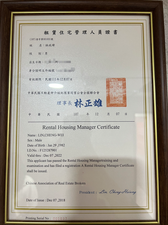 租服人員證書